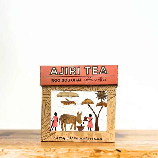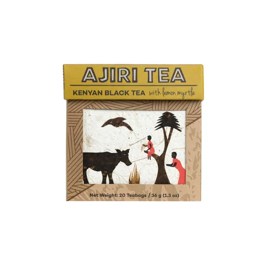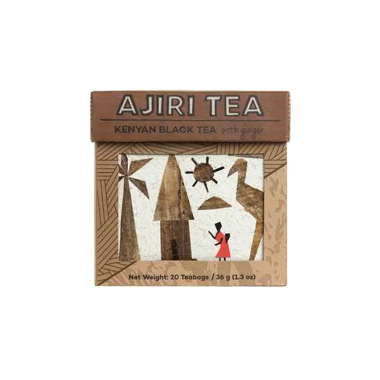 Ajiri employs 60 women to handcraft each and every label for the tea and coffee boxes using dried bark from banana trees.
