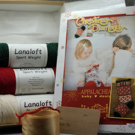 Add a little Fair Isle fun to your Christmas stocking display with this lovely Christmas stocking kit. Beautifully packaged in a gift box, adorned with a satin ribbon, ready for gift giving. Your kit will also include a knitter signature gift tag and detailed pattern.