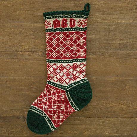 Christmas Diamonds stocking is designed by Rachel Nash Law and features classic Christmas colors and a cuff for a monogram.