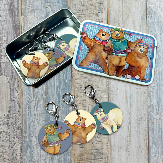 Six round stitchmarkers, each 2cm in size are printed onto aluminum and varnished. Perfect for your knitter and Crochet friends!