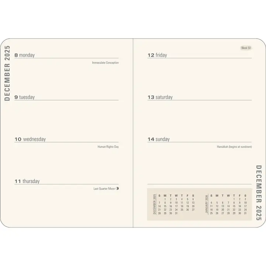 • The weekly planner pages provide a 2-page spread with equal space for all 7 days