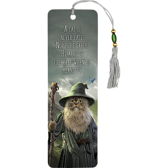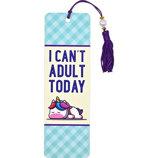 - Bookmark is encased in a protective transparent plastic sleeve.