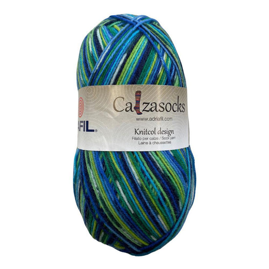 Adriafil Calzasocks featuring KnitCol Prints takes a soft and sturdy sock yarn base and adds fun self-patterning colorways perfect for spicing up projects worked in simple stitches. Socks are an obvious choice, but fingerless mitts, hats, and scarves will also work up into colorful finished items that are machine-washable and dryable for easy care. Bring a little extra interest to your next project—without any extra work or ends to weave in—with Calzasocks!