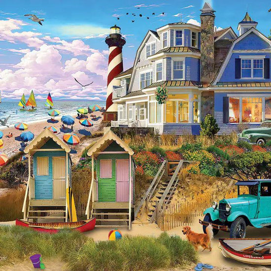 Every White Mountain Puzzle is manufactured in America. All puzzles are interlocking and made of sturdy blue chipboard on recycled paper. 1000 piece puzzles are the LARGEST IN THE INDUSTRY, measuring 24" x 30" when finished. Based in Jackson, New Hampshire